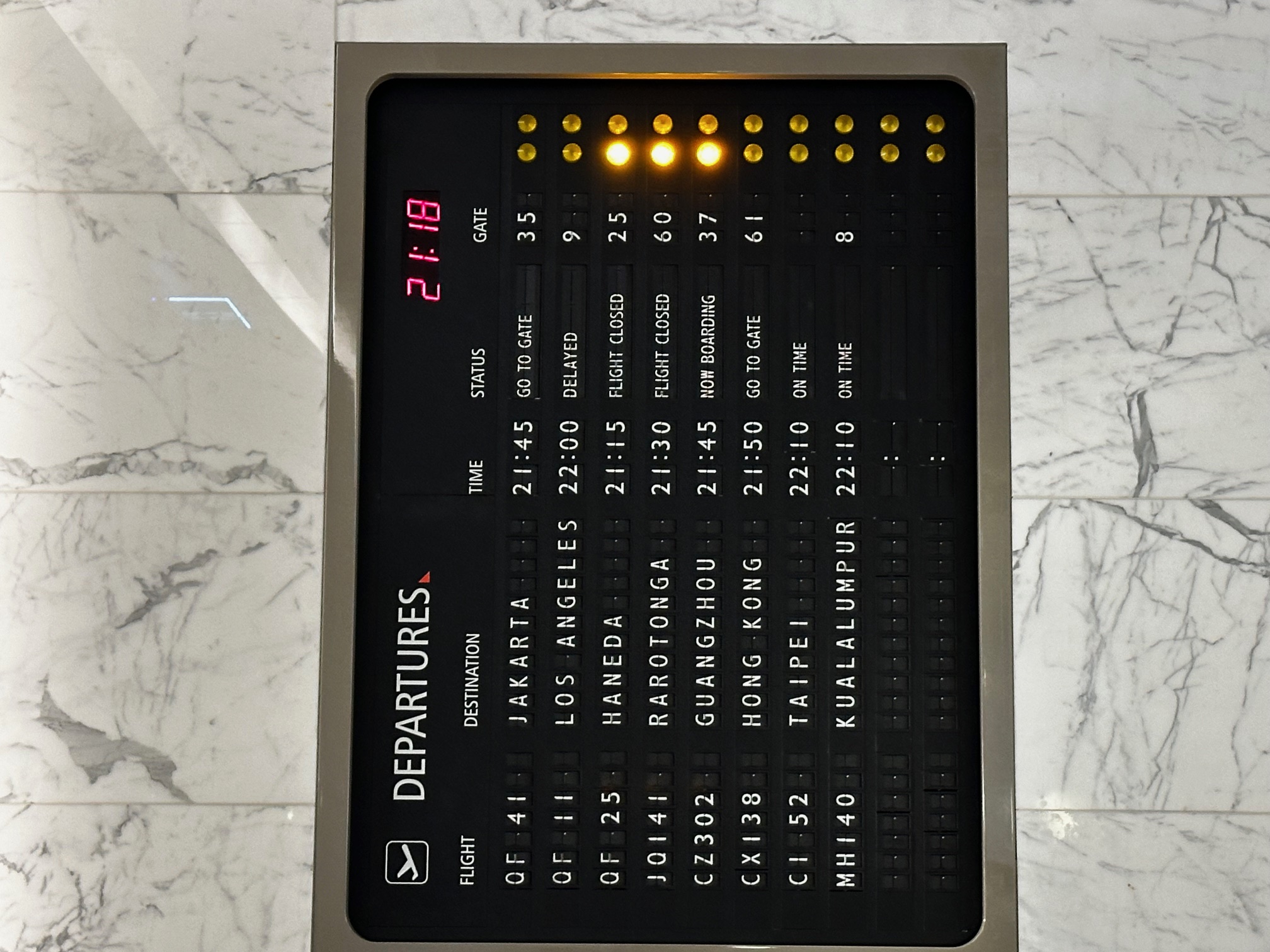 We departed LAX just before midnight on Saturday and arrived to Sydney at breakfast time Monday morning.